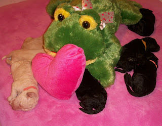 The pups are 4 weeks old! We will donate one of these puppies to a special needs person. If you or someone you know would like to train your own service dog, please contact us! www.gabbyjackranch.org